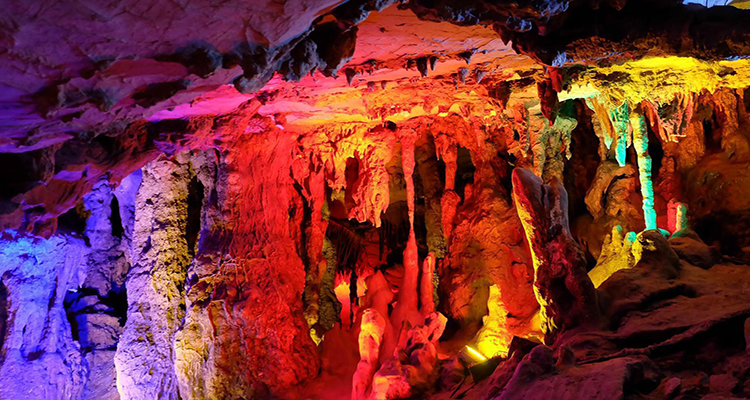 亮點(diǎn):喀斯特溶洞,鐘乳石千姿百態(tài),燈光映襯下如夢如幻。