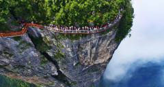 天門山國家森林公園因自然奇觀“天門洞”而得名。游覽景區(qū)時,須乘坐長達約7500米的索道,你可以在纜車中俯瞰腳下盤旋在峭壁之間的通天大道和山中美景。膽大的還可以走一走貼壁懸空的玻璃棧道,體驗凌空行走的刺激。