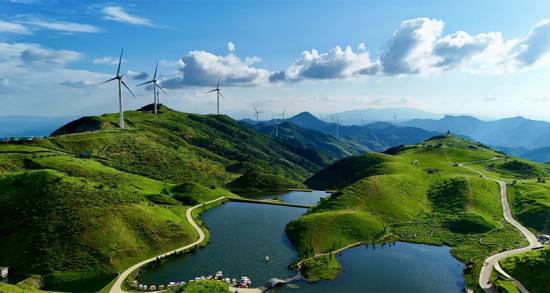 高聳入云的“大風(fēng)車”沿著山脊蜿蜒數(shù)百公里,高聳入云,猶如一條條巨龍騰空遠(yuǎn)去,蔚為壯觀。