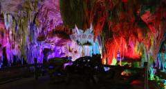 更絕的是,鵝管和鐘乳石倒映在水中,上下映照、渾然一體、形成了一座五光十色的巨大金山,光芒四射、龍鱗點(diǎn)點(diǎn)。她離奇多變的光影、五彩繽紛的顏色、千姿百態(tài)的形狀、加上水滴池面、洞中的天籟之音,形成了神秘之境讓你感到撲朔迷離,如在夢中、疑似天堂。當(dāng)您走近她時,就體會到什么是人間仙境,什么是滄海桑田;當(dāng)您聆聽她時,就知道什么是余音繞梁,什么是仙樂飄飄。那感覺、那韻味豈是語言能描述出來的。