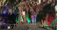 波月洞是以地下溶洞景觀為主體,地面景點(diǎn)相陪襯的綜合性公園,集游山、觀洞景、望瀑布、巖溶研究于一體的風(fēng)景名勝區(qū)。整個(gè)洞府以迷宮大廳為中心前部洞廳寬廣宏偉,氣勢(shì)磅礴;后部洞廳線條密集,晶瑩剔透。洞中千柱挺立,萬(wàn)裙倒掛,山川、田野、瀑布、石柱、石幔、石鐘乳比比皆是,一步一景、步步是景,景景神奇。