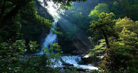 神農(nóng)谷國(guó)家森林公園內(nèi)森林茂密,小氣候環(huán)境優(yōu)越、空氣清新、負(fù)離子含量高,更能促進(jìn)人體身心健康。澗深谷幽,一巨石雄踞路頭,繞石而進(jìn),豁然開朗,瀑布自48.2米的絕壁上轟鳴而下,水珠飛濺,如滾珠噴雪,迷霧茫茫,凝視上端,有如輕紗飄蕩,又如煙霧翻滾,其趣無窮。